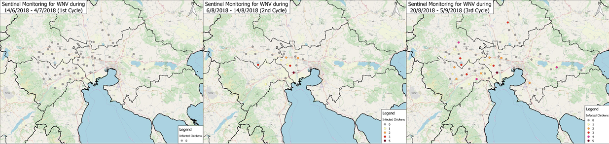 Figure 2: Sentinel data sampled for WNV by ECODEVELOPMENT S.A. in three date cycles.